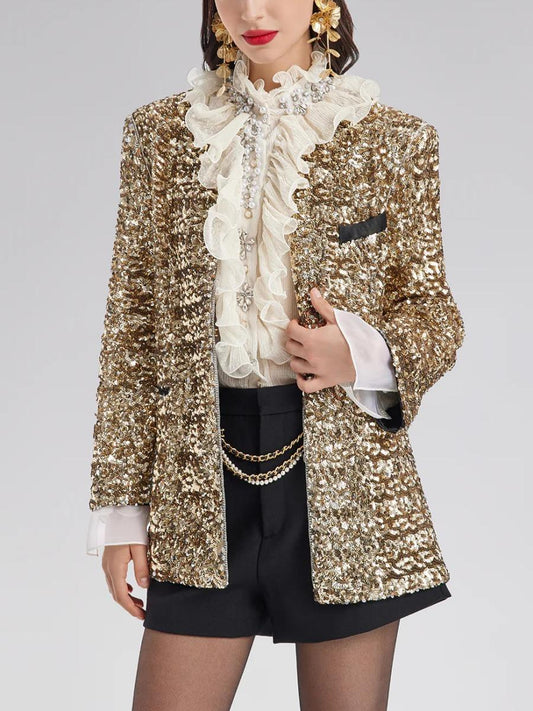 Ruffled Stand Collar Beaded Shirt