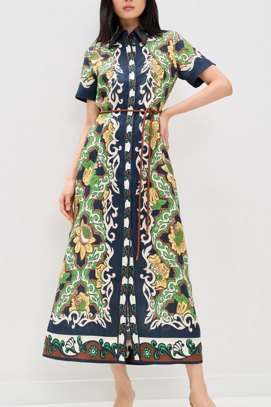 Green Hand Embroidered Maxi With Belt