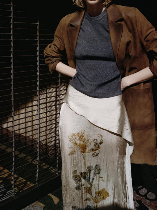 Floral Silk Elegant Midi Skirt