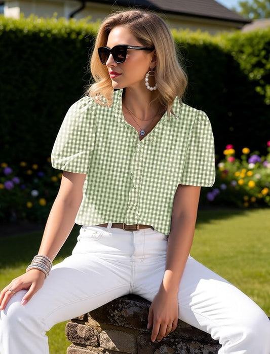 Puff Sleeve V-Neck Shirt Dress