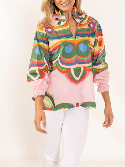Vienna Striped Button Down Top