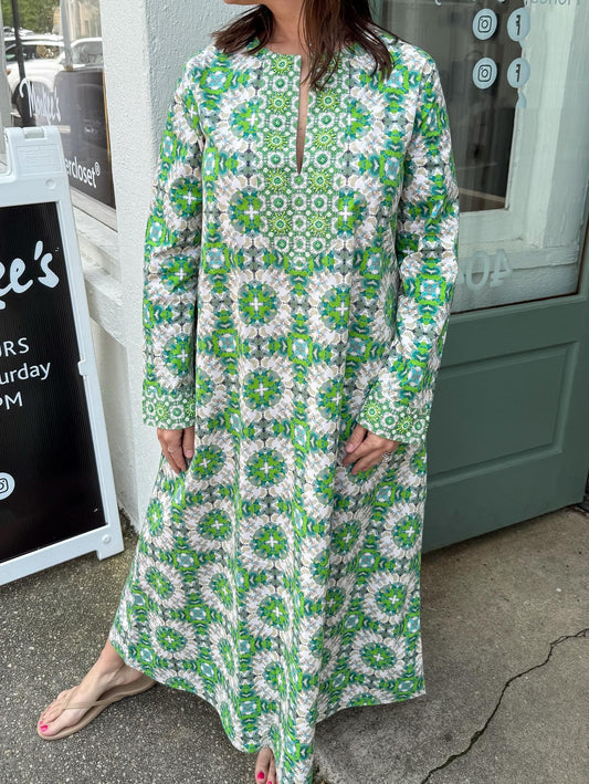Jae McLoughlin Knit Cloth Printed Split V-Neck Long Sleeve Dress