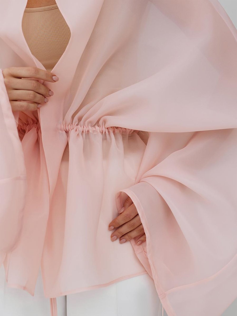 Fashion See-through Mesh Drawstring Belted Cardigan Top